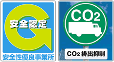 社団法人全日本トラック協会が認定する貨物自動車運送事業安全性評価事業(Gマーク)を実施しています。、東京都トラック協会にて地球温暖化防止対策の対応を図るため、東京都トラック協会独自のCO2等削減対策を盛り込んだ『グリーン・エコプロジェクト』に弊社も実施しております。