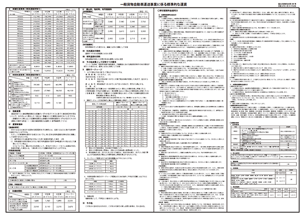 | 一般貨物自動車運送事業に関わる標準的な運賃・料金表 | 一般貨物自動車運送事業に関わる標準的な運賃・料金表 下記をクリックするとPDFファイルが開きます(8.9MB) ![]() |